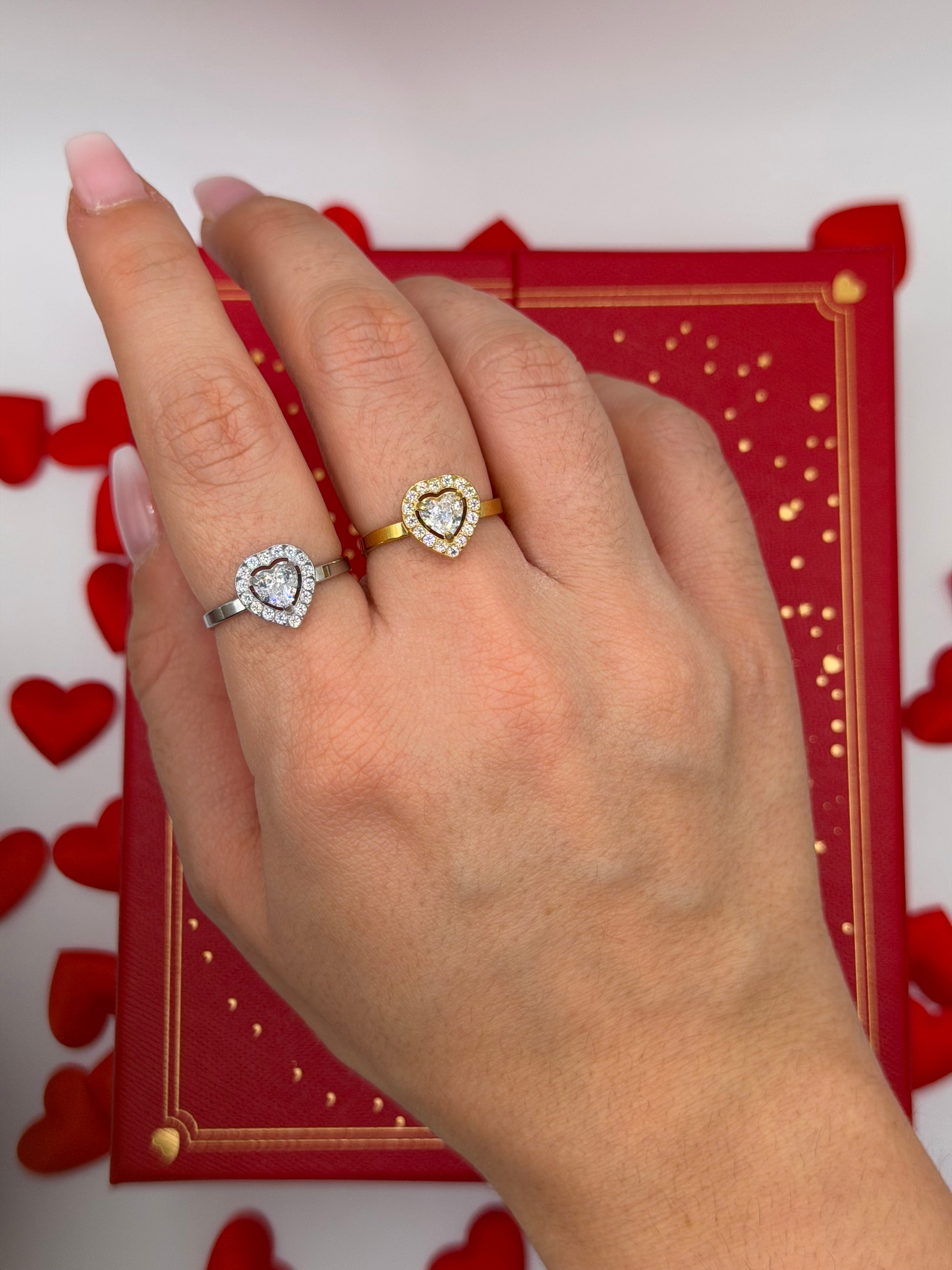 Anello in acciaio inossidabile e regolabile con cuore con zirconi
