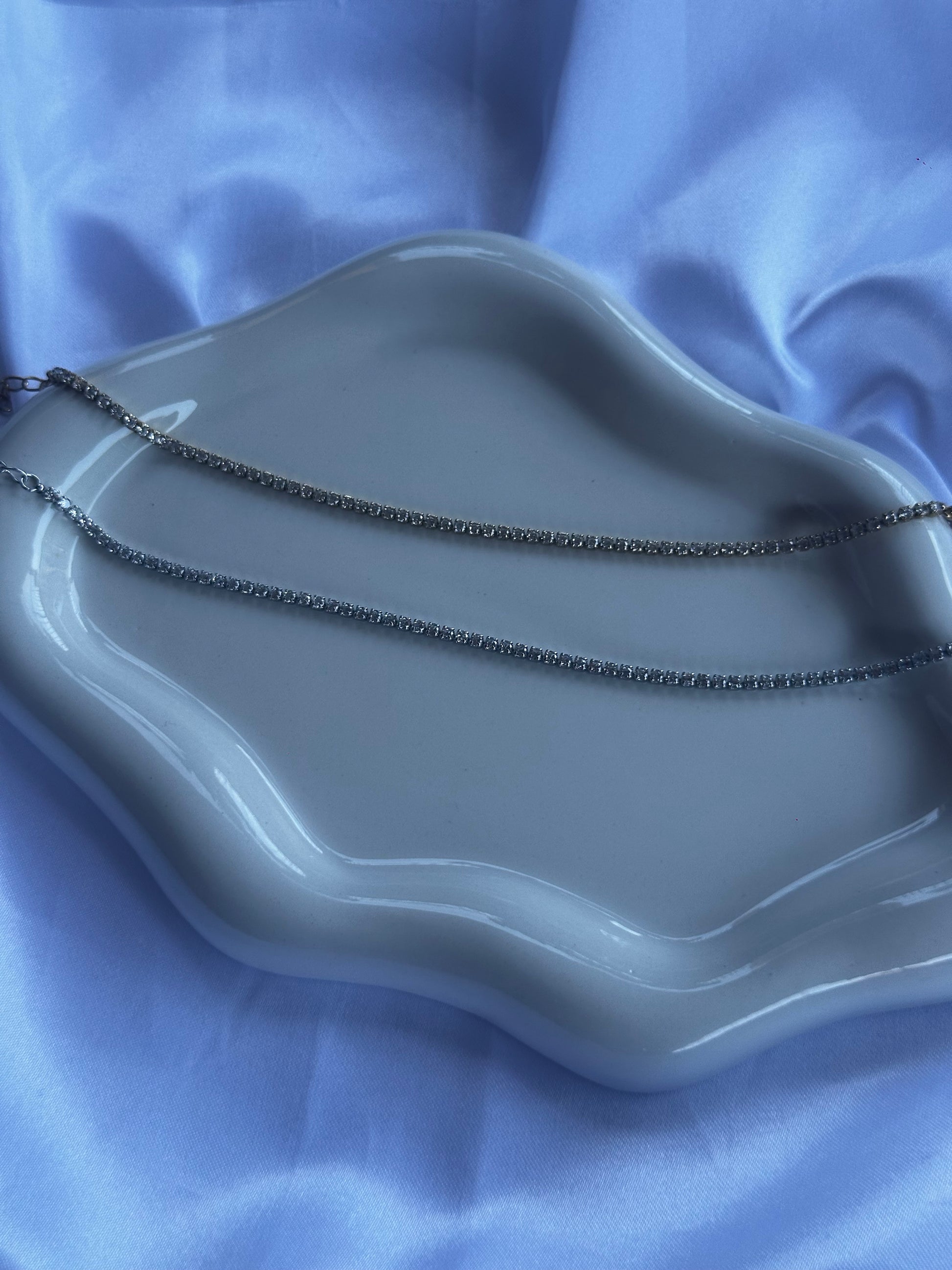 Bracciale tennis in acciaio inossidabile tempestato di zirconi e regolabile. La sua forma sottile lo rende fine ed elegante