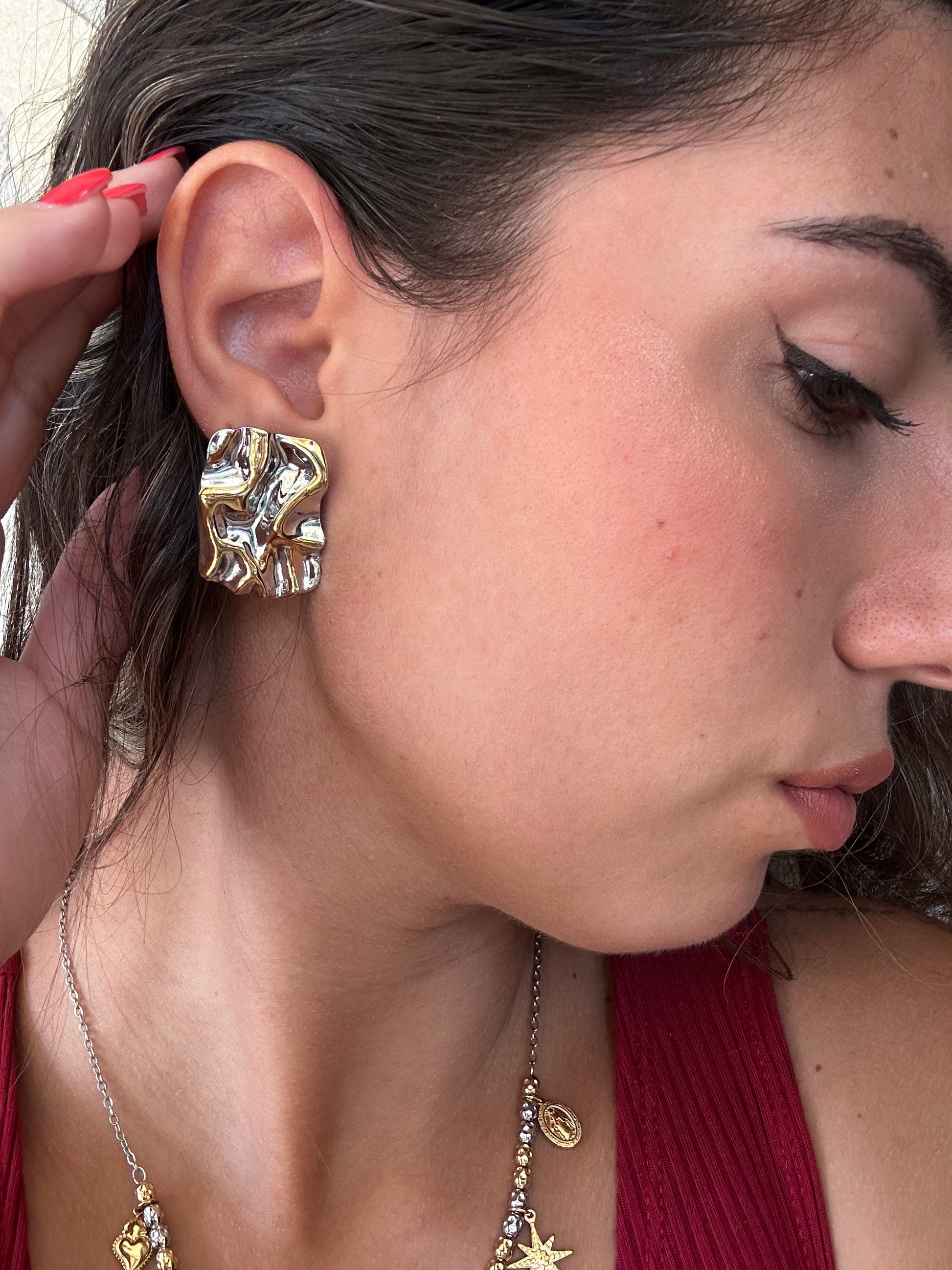 Orecchini in acciaio inossidabile con doppia colorazione gold e silver. Perfetti per ogni look