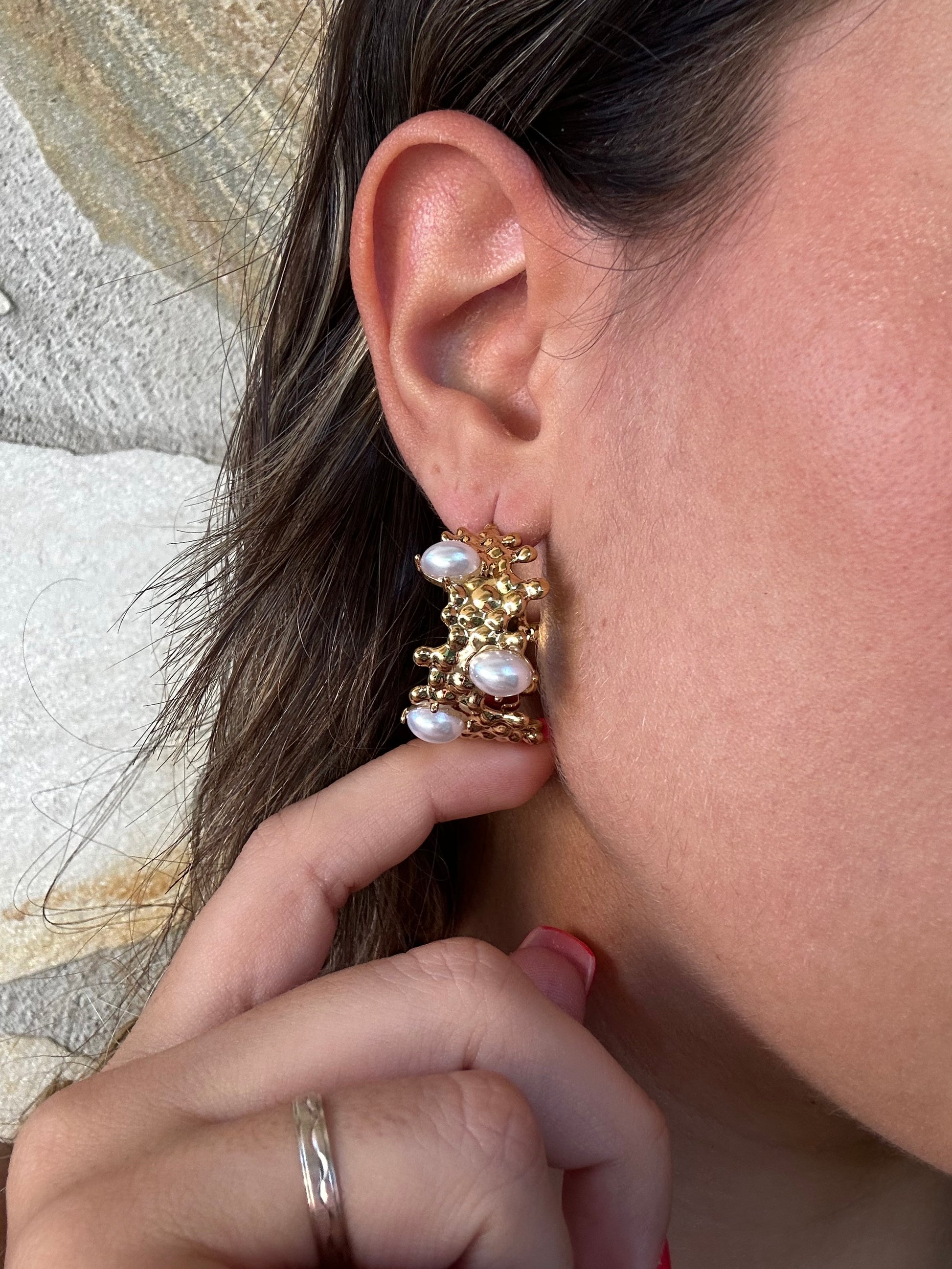 Orecchini in acciaio inossidabile a forma di semi cerchio impreziosito da perle